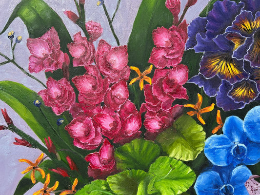 Flowers with Lilac and Teal Background