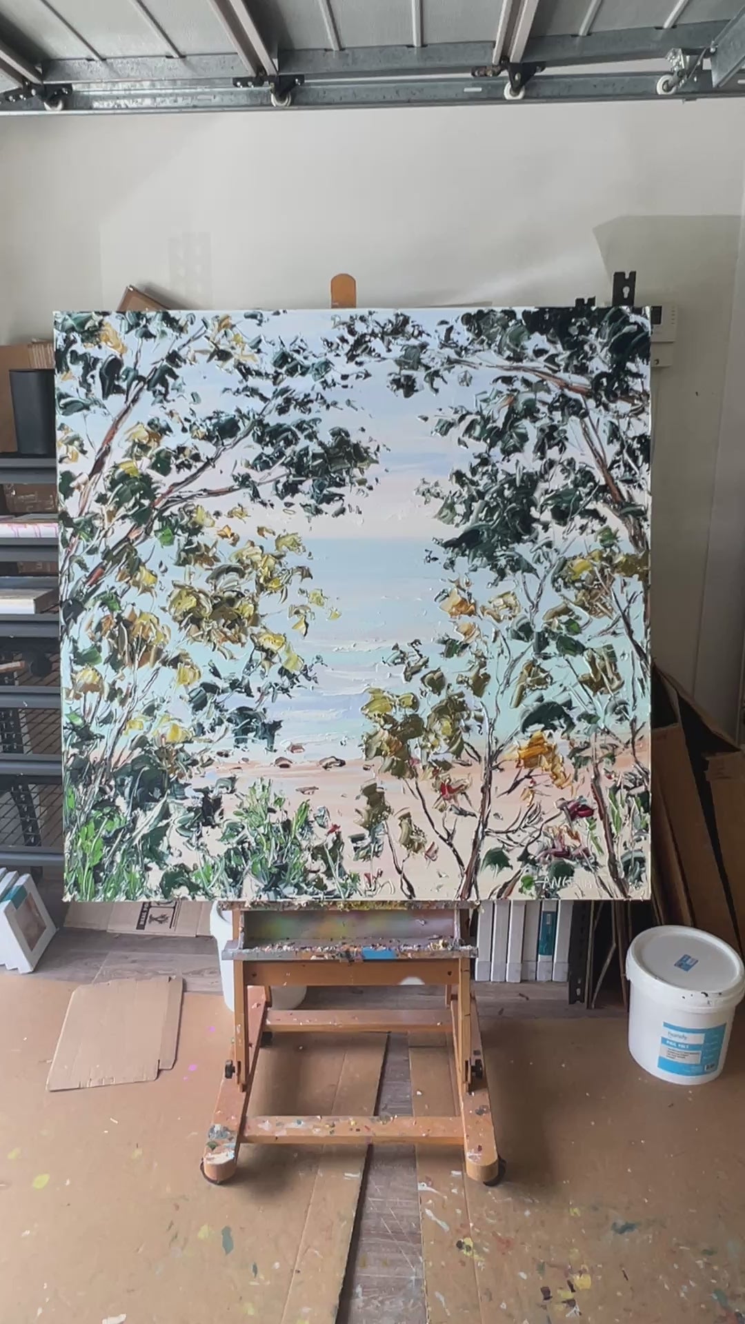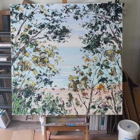 This was a commissioned piece of a walking track with ocean and mountain views, in Apollo Bay - our happy place. My husband and I gifted it to each-other as a wedding anniversary token. We splashed out a bit extra on a gift to each-other,since the last 2 years were riddled with covid and all its lockdowns. There is always a degree of uncertainty when you seek a commissioned piece, and you need to remember that your vision may have a different interpretation to the artist’s perceptions. We were open-minded to this and prepared to accept the artist’s (Angie’s) interpretation. But Angie worked to the brief flawlessly, and we are beyond thrilled with our piece. It sits in our lounge area, where most of our time is spent when we are home, so that we can enjoy it to its fullest. And when we aren’t in Apollo Bay in person, looking at this artwork transports us there mentally. All the family love it, and visitors admire it also.’ We could never thank you enough Angie- it brings us so much joy. Thanks Angie - it is much loved